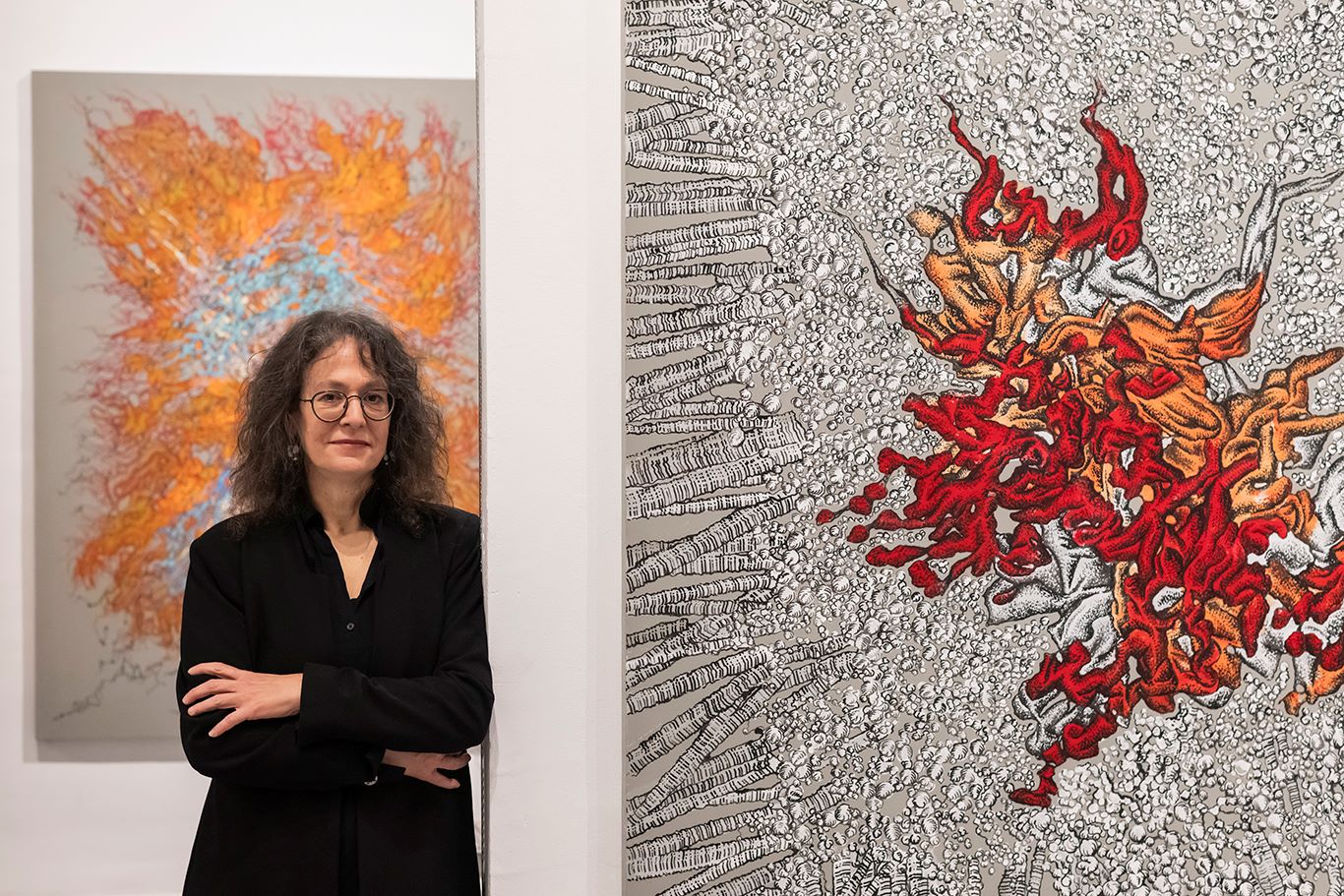 „Na granici između slike i crteža, tako bih ukratko mogla definirati strukturu umjetničkih radova kojima se bavim posljednjih desetak godina. Štoviše, ta struktura je tijekom vremena postajala sve detaljnija, nadopunjavana sitnim elementima, čineći je tako sve izazovnijom. Dvojnost crteža i slike važna je odrednica tih radova jer preciznost i jasnoća detalja koju nude crtačke tehnike intenziviraju vizualna događanja unutar formata. S druge strane, mogućnosti slikarskih opisa preoblikuju prostor u raspoloženje, daju mu karakter i osjećaje. Svaki novi prikaz svojevrsno je putovanje u neistražene prostore koji se kontinuirano mijenjaju i međusobno prožimaju. Idejnim konceptom izložbe želja mi je nastaviti istraživanje imaginarnih i introspekcijskih polja, nastaviti transformiranje elemenata kojima je početna pozicija objekt/predmet/zbilja, a koji kontinuirano traže nove oblike. Razvoj tih elemenata je nepredvidljiv, u svom stalnom traganju možda potpuno prepušten beskonačnoj mijeni.“