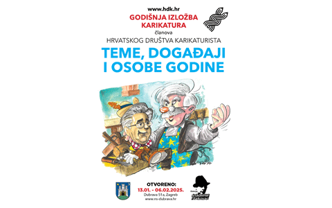 Hrvatsko društvo karikaturista s ponosom najavljuje svoju tradicionalnu godišnju izložbu karikatura članova HDK koja se neprekidno održava od osnutka Društva 1985. godine. Ovogodišnja izložba donosi djela vrhunskih hrvatskih karikaturista, kako onih etabliranih u dnevnim tiskovinama, tako i manje poznatih široj javnosti koji svoje radove objavljuju u lokalnim medijima ili redovno osvajaju nagrade i priznanja na međunarodnim festivalima karikature.