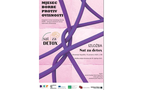 U edukacijskoj dvorani Aquatike svečano je otvorena izložba "Sat za detox", koja kroz kreativna djela mladih autora progovara o suvremenim ovisnostima i važnosti mentalnog zdravlja.