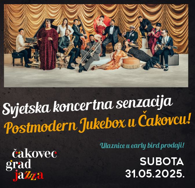 Nova koncertna atrakcija ponovno je u Gradu jazza: svjetska glazbena senzacija, retro muzički kolektiv Scott Bradlee’s Postmodern Jukebox (PMJ), najavio je novu turneju "Magic & Moonlight" koja u veljači starta u Australiji, a 31. svibnja stiže u Grad jazza – Čakovec.