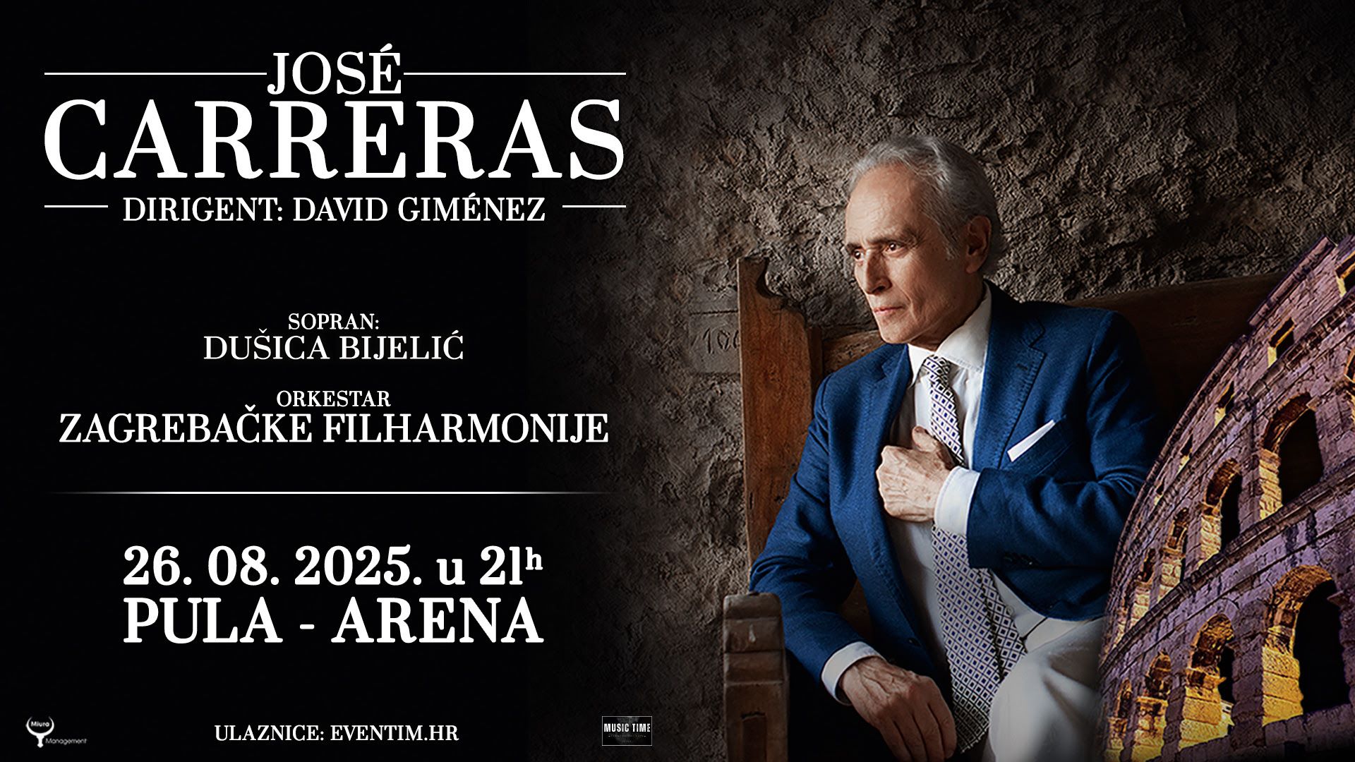 José Carreras, jedan od najistaknutijih opernih pjevača svoje generacije, dolazi u Hrvatsku kako bi 26. kolovoza u 21 sat nastupio u veličanstvenoj Pulskoj areni. U pratnji Zagrebačke filharmonije, Carreras će izvesti neke od najpoznatijih arija i pjesama koje su obilježile njegovu impresivnu karijeru.