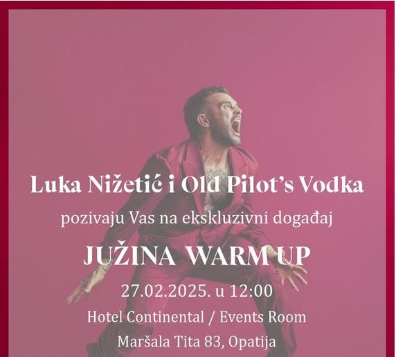 Događaj Provod & zabava Opatija 27.02.2025. LUKA NIŽETIĆ I JUŽINA WARM UP 27.02.2025., 12:00, HOTEL CONTINENTAL U OPATIJI Video Kontakt podaci Dallas Records Podijeli Tagovi Hrvatska Opatija Luka Nižetić Dallas Records Dora ili Hrvatski izbor za pjesmu Eurovizije