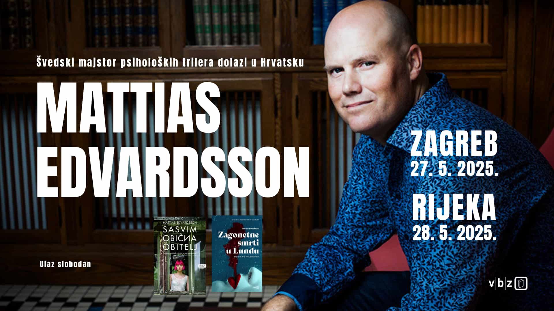 Švedski autor Mattias Edvardsson, jedan od najistaknutijih suvremenih pisaca psiholoških trilera, dolazi u Hrvatsku kako bi predstavio svoje romane Sasvim obična obitelj (A Nearly Normal Family) i Zagonetne smrti u Lundu (Familjetragedi). Edvardsson, čiji su romani prevedeni na više od trideset jezika i osvojili međunarodnu publiku, boravit će u Zagrebu i Rijeci, gdje će se susresti s čitateljima i govoriti o svom radu.