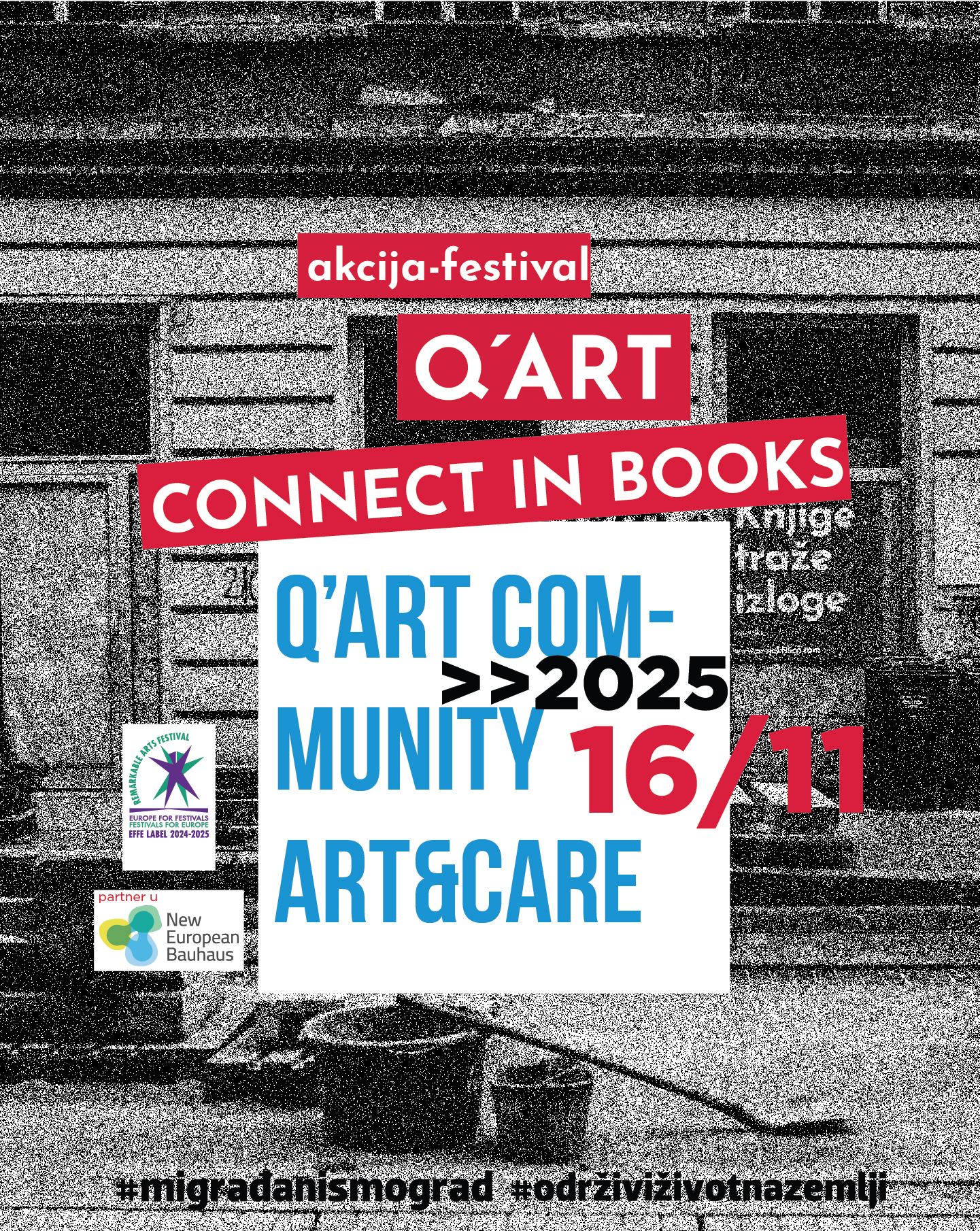 Kroz književne performanse, javna čitanja, koncerte, modne revije, radionice i intervencije studenata umjetničkih akademija, Q’ART – CONNECT IN BOOKS otvara prostor novog urbanog dijaloga.