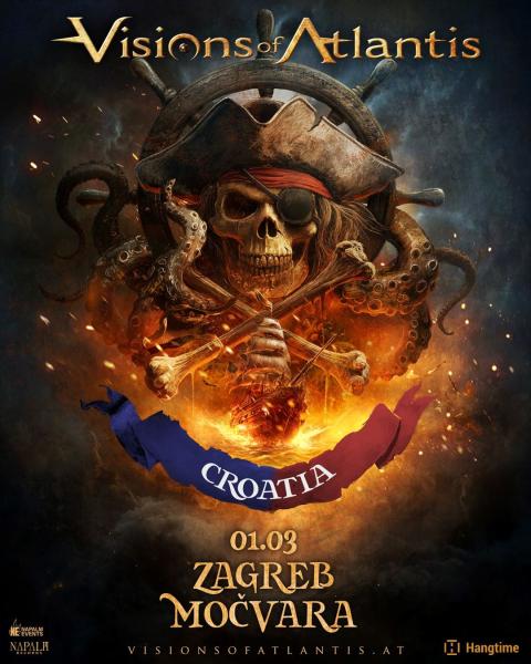 Austrijski sympho metal bend Visions of Atlantis premijerno će nastupiti u Hrvatskoj 1. ožujka 2026. godine u zagrebačkom klubu Močvara. Bend prvi put dolazi pred hrvatsku publiku u sklopu europske turneje tijekom koje promovira s aktualni album “Pirates II - Armada”, a Zagrebu donosi spektakularan spoj snažnih vokala, orkestralnih aranžmana i filmske atmosfere po kojoj su postali prepoznatljivi na svjetskoj sceni. Svi ljubitelji piratske estetike jamačno će doći na svoje. Early bird ulaznice su rasprodane što najbolje svjedoči o velikom interesu publike za ovaj bend. Pretprodajna cijena iznosi 32 eura, dok će na dan koncerta, ako ih ostane, iznositi 35 eura. Fizičke ulaznice dostupne su u Dirty Old Shopu. Link na prodaju: https://bit.ly/3L6U2h3