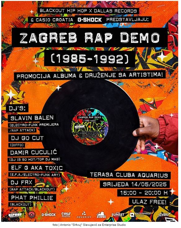 Promocija kompilacije Zagreb Rap Demo (1985–1992) održat će se u srijedu, 14. svibnja u klubu Aquarius. Program započinje press konferencijom od 15 sati, dok je iza predviđeno potpisivanje izdanja i druženje s artistima povodom ovog važnog izdanja koje dokumentira rane dane zagrebačke rap scene.