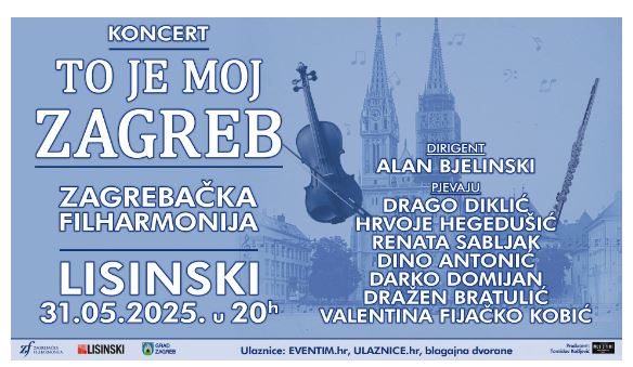 Zagrebačka filharmonija 31. svibnja 2025., na dan grada Zagreba, održat će koncert pod nazivom „To je moj Zagreb“ u Koncertnoj dvorani Vatroslava Lisinskog. Ovaj koncert bit će pravi glazbeni hommage Zagrebu, gradu koji je inspirirao mnoge umjetnike kroz povijest, a koji je svojim šarmom i kulturnim bogatstvom oplemenio brojne putnike namjernike i goste.