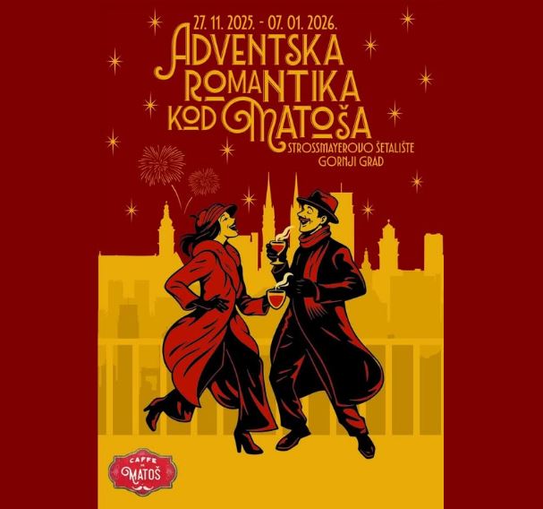 Gastro & Enologija Advent Zagreb 27.11.2025. - 07.01.2026. Adventska romantika kod Matoša Strossmayerovo šetalište - Gornji grad Kontakt podaci Caffe de Matoš, 21.11.2025. Podijeli Tagovi Hrvatska Zagreb Adventska romantika kod Matoša Strossmayerovo šetalište Gornji grad Advent Božić Nova godina Gastronomija