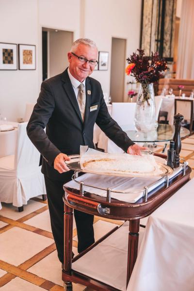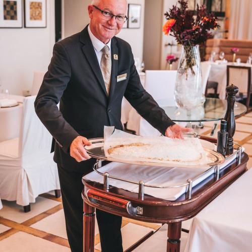 Zinfandel’s već godinama posebnu pažnju posvećuje održivom pristupu – od biranih lokalnih proizvođača do minimalnog otpada i sezonskih namirnica koje čine razliku. Tu su i vegetarijanska i bezglutenska jela te ona prilagođena prehrambenim navikama – pripremljena s jednakom pažnjom. „Kod nas nitko ne smije imati osjećaj da mu je nešto uskraćeno,“ dodaje Ana. Atmosfera u Zinfandel’su ostaje neponovljiva. Kad se svjetla lagano priguše i ambijent preplavi onaj crveni sjaj, počinje predstava. Osoblje pred vama priprema jela poput ručno kosanog tatarskog bifteka – koji je priče za sebe – ili filetira brancina pečenog u soli kojeg svakako valja kušati. U ponudu se ponovno vraća vatreni šou – flambiranje slasnih Crêpes Suzette palačinki pred vašim stolom, koje dolaze sa sladoledom od limuna i svježom mentom. „To su oni trenuci koji pretvaraju večer u nezaboravan gurmanski doživljaj koji se pamti,“ kaže Ana kroz smijeh. Usluga u Zinfandel’su dio je te priče – diskretna, pažljiva, prijateljska i uvijek s osmijehom i toplinom.