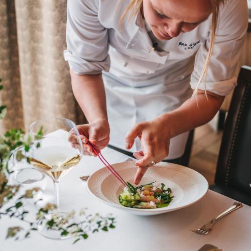 Ana Grgić Tomić, prva dama Esplanadine kuhinje, karijeru je započela prije 25 godina baš u Esplanade Zagreb Hotelu, a posljednjih trinaest godina vodi restoran Zinfandel’s, jedan od najcjenjenijih restorana u Hrvatskoj. Pod njenim vodstvom cvjeta i šarmantni francuski Le Bistro, dok uspješno vodi i Esplanade Catering. Svojim inovativnim i kreativnim jelovnicima Ana je tijekom godina osvojila srca brojnih gostiju, uključujući zvijezde estrade, članove kraljevskih obitelji poput kralja Charlesa, svjetske državnike i mnoge druge. Njezina gastronomija prepoznata je od prestižnih publikacija koje su je nominirale za Ženu godine i Osobu godine. Rižoto po njezinoj recepturi tri je puta (2013., 2016. i 2022.) uvršten na listu najboljih rižota svijeta u poznatom vodiču Guida Gallo, dok je njezin stil i osobnost dovelo do uloge članice žirija u kulinarskim TV emisijama Celebrity MasterChef i 3, 2, 1 Kuhaj. Ana je i predana ambasadorica projekta Fish Forward u Hrvatskoj, inicijative WWF-a, kroz koju podiže svijest o održivoj konzumaciji ribe i morskih plodova. Među prvima je u Hrvatskoj uvela program Food Waste u hotelsko poslovanje, a svojom predanošću održivim principima pripreme hrane zaslužila je i prestižnu zelenu Michelinovu zvjezdicu za restoran Zinfandel’s. Prestižna priznanja prate njezinu karijeru: 2022. proglašena je Chefom godine po vodiču Gault&Millau Hrvatska, 2016. dobila je nagradu za Chefa sutrašnjice, a 2023. Svjetska gastronomska organizacija dodijelila joj je posebno priznanje Étoile Blanche na European Hotel Awards u Barceloni. Gurmansko udruženje Chaîne des Rôtisseurs prepoznalo je njezinu virtuoznost i dodijelilo joj titulu Chef Rôtisseur. Tijekom godina Ana je surađivala s vrhunskim chefovima s Michelinovim zvjezdicama iz Francuske, Italije, Izraela, Koreje i Austrije, a njezin tim gostovao je u prestižnim restoranima diljem svijeta, predstavljajući sam vrh hrvatske gastronomije.