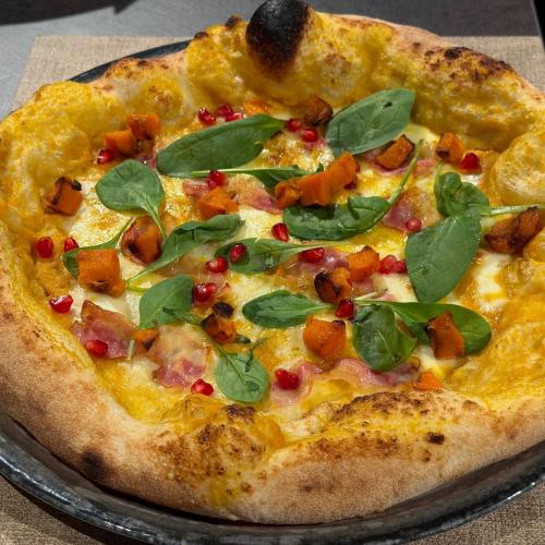 Pizza Vrganji kombinira Mozzarellu Fior di latte, kremu od crnog tartufa, vrganje, kozji sir i bresaolu te čini savršen spoj šumskih aroma i profinjenosti. Pizza Buča donosi tople jesenske tonove u kremi od buče, s dodatkom dimljenog sira, Mozzarelle Fior di latte, pancete, pečene buče, sjemenki nara i mladog špinata. Pizza Roast Beef spaja kremu od hrena, sočni roast beef, Mozzarellu Fior di latte, pekmez od smokve, svježe smokve i rikolu u harmoniju slanih i slatkih nota.