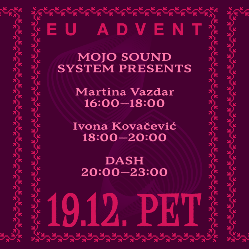 Ivona Kovačević predstavlja Dash, slovensku DJ-icu s berlinskom adresom i stalnu gošću prestižnih europskih festivala i klubova. Dash je ujedno i pokretačica programa Pozione d’Amore, platforme za nadolazeće umjetnike, kojom u legendarni ljubljanski klub K4 donosi moderan klupski zvuk, od italo disca do indie dance ritmova. Mojo party i ove godine ostaje nezaobilazna točka za sve koji Advent doživljavaju kao prostor urbane glazbe i plesne energije.