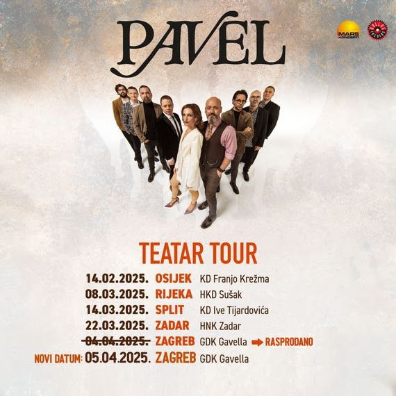 Grupa Pavel s ponosom najavljuje koncertnu turneju pod imenom 'Teatar Tour' s kojom će u periodu od veljače do travnja 2025. obići pet hrvatskih gradova!