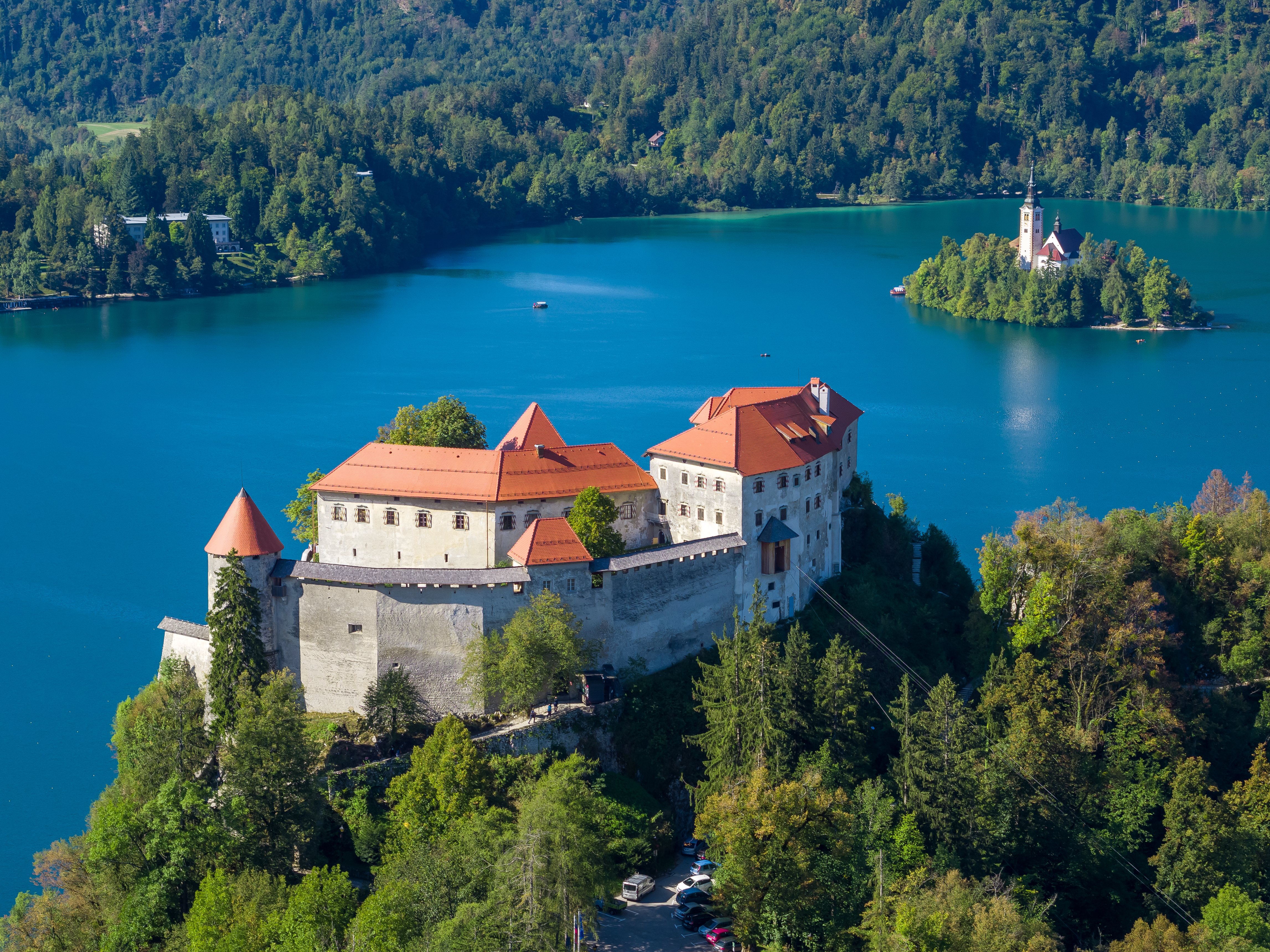 A što i ne bi bio, kad je Bled sa svojim neosvojivim dvorcem na gotovo sto trideset metara visokoj stijeni iznad smaragdnog ledenjačkog jezera i romantičnim otočićem s Marijinom crkvom najljepša, a time i najprepoznatljivija slika Slovenije. Sa samoga se dvorca pružaju predivni pogledi na Julijske Alpe s Triglavom, najvišim vrhom Slovenije, i planinski lanac Karavanke, na okolne šumovite visoravni s planinama koje se spuštaju prema ravnici prema središnjoj Sloveniji.
