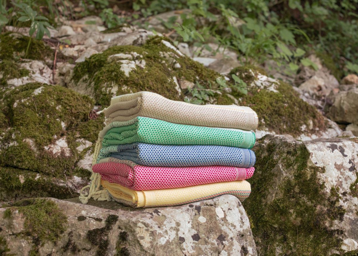 Kolekcija dolazi u pet boja koje prizivaju ljeto: crvena, plava, zelena, žuta i bež – prirodni tonovi koji će savršeno nadopuniti vaš ljetni stil. Odabirom Peshtemal Terre, ne birate samo ručnik. Birate proizvod koji čuva povijesnu tradiciju tkanja te podržava lokalne zajednice koje njeguju ovu vještinu izrade.